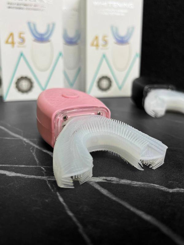 Ультразвукова зубна щітка капа Whitening для відбілювання зубів. Електрична зубна щітка спрощує та суттєво прискорює процес чищення зубів. Зубну щітку – капу можна налаштовувати індивідуально під себе, все залежить від чутливості зубів, завдяки цьому можна чистити зуби, комфортно та дбайливо. Розумна електрична зубна щітка виконана із спеціальної капи з м'якого та ніжного харчового силікону з тисячами ворсинок, яка з легкістю адаптується під будь-яку ротову порожнину та забезпечує максимально ефективне та комфортне чищення зубів з охопленням у 360 градусів, тобто весь зубний ряд. Силікон стійкий до пошкоджень Компактна та портативна Зубна щітка оснащена вбудованим акумулятором Підходить під усі типи зубів або рідкої консистенції). Нанесіть пасту трьома крапками на нижню та верхню капи, але перед цим змочіть її водою. Для чищення зубів та масажу достатньо 50 секунд часу, а для відбілювання близько 15 хвилин. Режим відбілювання використовує спеціальні світлодіоди холодного світла, які вбудовані в корпус електронного блоку щітки. Після цього щітка автоматично вимкнеться. Ця щітка керується однією кнопкою олністю у воду. Захист відповідно до стандарту IPX7 повністю виключає проникнення вологи усередину корпусу. Матеріал: Пластик, силікон Час заряду: до 5 годин Водонепроникність: IXP7 Обертання: повне обертання на 360 градусів Живлення: від акумулятора Заряджання від будь-якого джерела живлення з портом USB 1. Зубна щітка-капа 2. USB шнур 3. Упаковка >