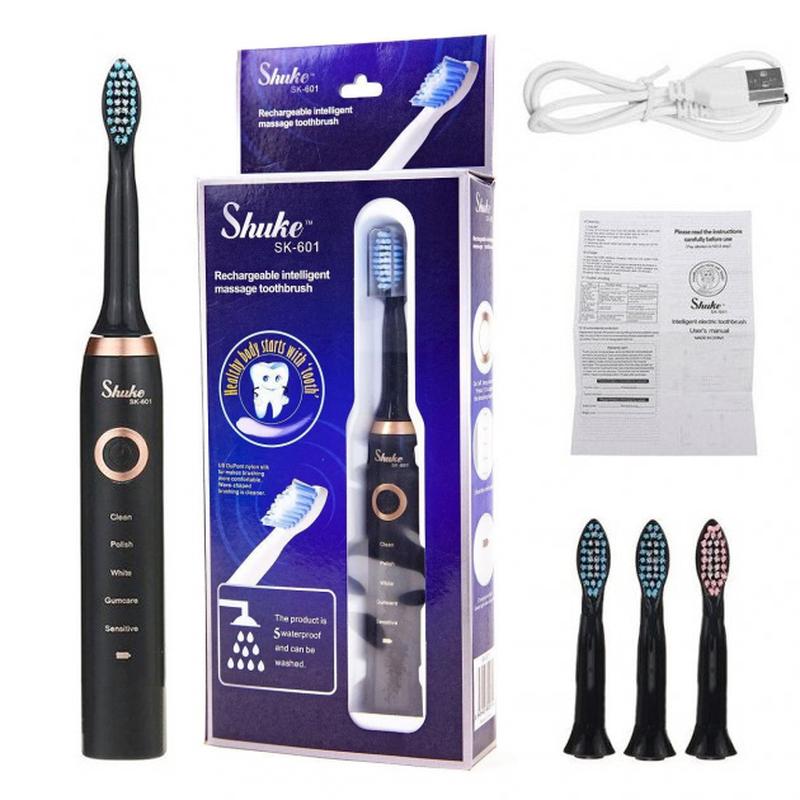 Электрическая щетка shuke sk-601 аккумуляторная. ультразвуковая щетка для зубов + 3 насадк...