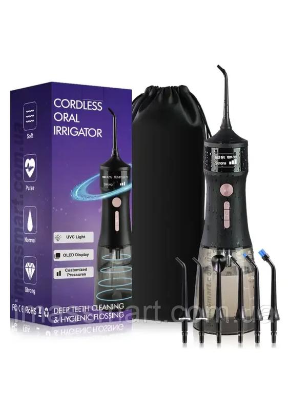 Опис Бездротовий іригатор Oral Irrigator LP221 для чищення зубів і ротової порожнини з 4 режимами роботи, 10 рівнями тиску, 6 насадками для чищення, УФ стерилізатором, OLED-дисплеєм, вбудованим акумулятором і знімним резервуаром для води об'ємом 335 мл. Іригатор Oral Irrigator LP221 є найновішою моделлю на ринку, чудовий як на вигляд, так і за своїми можливостями. Забезпечує унікальне поєднання тиску води та пульсації для глибокого очищення між зубами та нижче лінії ясен, видаляючи шкідливі бактерії, наліт, залишки їжі, які не доступні при традиційному чищенні зубів щіткою та зубною ниткою. Іригатор масажує та стимулює ясна для покращення кровообігу та збереження Ваших ясен у здоровому стані. Також він ідеально підходить для чищення навколо зубних мостів, брекетів, коронок, імплантів. • Поширений вид роз'єму слота заряджання USB type-C. На відміну від аналогів з індивідуальними видами роз'ємів, що використовуються лише у конкретного виробника. • Читабельний, зручний OLED-дисплей, який показує: робочий режим та рівень тиску, температуру води, ємність акумулятора, режим та час УФ-стерилізації. • Збільшено кількість рівнів тиску до 10 та діапазон тиску від 40 до 150 PSI. • Покриття корпусу soft-touch Новітня технологія. Завдяки першокласному насосу іригатор ротової порожнини генерує частоту 2000-2800 імпульсів на хвилину. У комплект іригатора входить: • Іригатор Oral Irrigator LP221 - 1 шт • Змінні насадки – 6 шт • USB-кабель – 1 шт • Інструкція – 1 шт • Чохол для зберігання – 1 шт Характеристики. • Акумулятор: 1800 мАг, літієвий • Вхідна напруга та сила струму: постійний струм, 5 V; 1 A • Частота пульсацій: 2000 – 2800 разів/хв. • Тиск води: 2,7 – 10,2 атм (40-150 PSI) • Об'ЄС бака для води: 335 мл • Рівень водонепроникності: IPX 7 • Розміри упаковки: 26 см х 9 см х 10 см • Вага: 445 г • Робочий діапазон температури води: 20 – 50 °C • Сертифікація: FCC (Federal Communications Commission for USA - сертифікація на відповідність технічним вимогам) СЕ (з фр. Сonformite Europeen – європейська відповідність) RoHS (Restriction of Hazardous Substances – обмеження використання небезпечних речовин