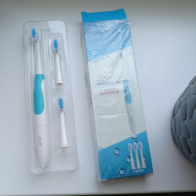 Нова зубна електрична щітка.Має три насадки,працює від батарейки .