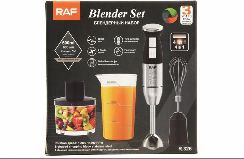 Блендер ручний raf r326 500 мл блендер ручний занурювальний блендер для смузі занурювальни...