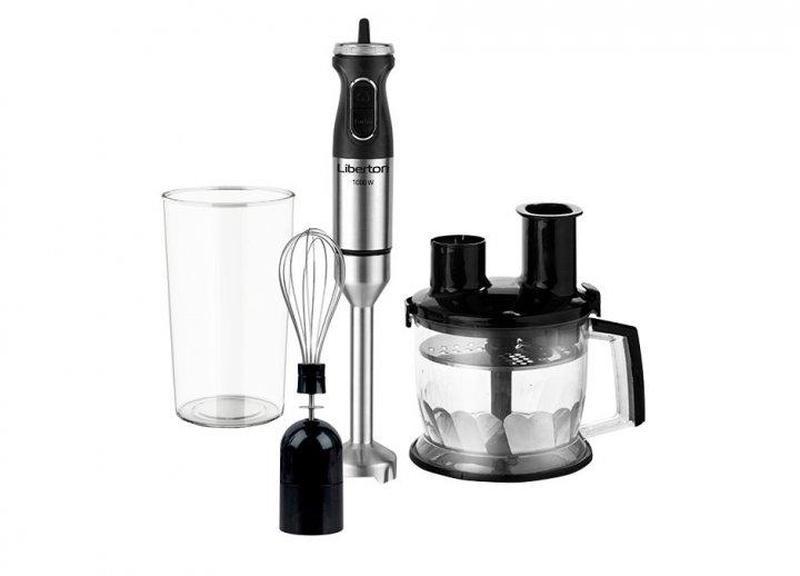 Виробник: Liberton Кілька примірників у наявності Потужність: 1000 Вт; Тип: занурювальний; Кількість швидкостей: 2; Плавне регулювання: так; Турборежим: так; Комплектація: 3 в 1; Аксесуари: насадка "блендер", вінчик для збивання, мірний стакан (600 мл), чаша подрібнювача (1500 мл), 2 диска для нарізки; Н Виробник: Liberton Режим Турбо: Так Блендер, тип:: занурювальний Вага брутто, кг:: 2,17 кг Вага нетто: 2 кг Вага внутрішнього блока: насадка &ß;блендер&ction; - 1 шт., вінчик для збивання - 1 шт., мірний стакан (600 мл) - 1 шт., мультиподрібнювач (1500 мл) - 1 шт. Колір: чорний+нерж Кількість насадок: 3 шт Номінальна напруга: 220-240 В Ніжка блендера, матеріал: неірж. сталь Потужність: 1000 Вт Регулювання швидкостей:: плавне