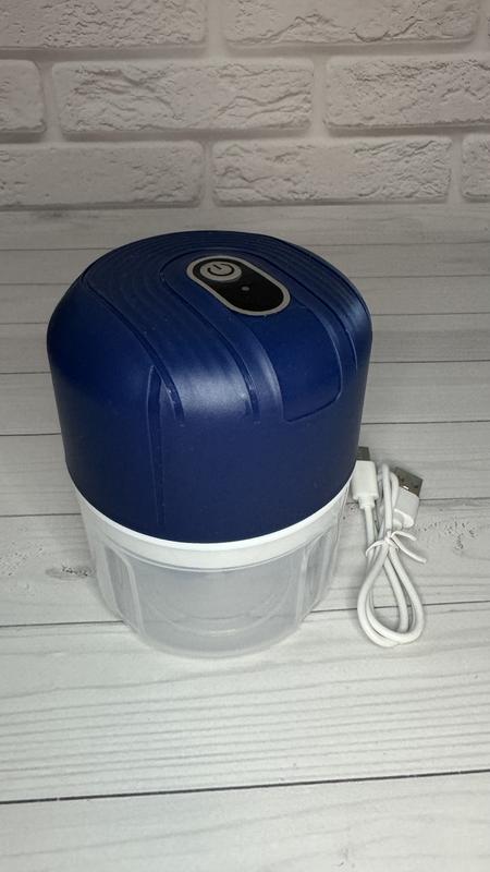 Колір: синій, оливковий, рожевий. Зручний і компактний на 250 мл. Розміри 12*8,6 см. Має 3 дуже гострих леза з нержавіючої сталі. Акумулятор 1200 мАг. Швидко і рівномірно продукти.