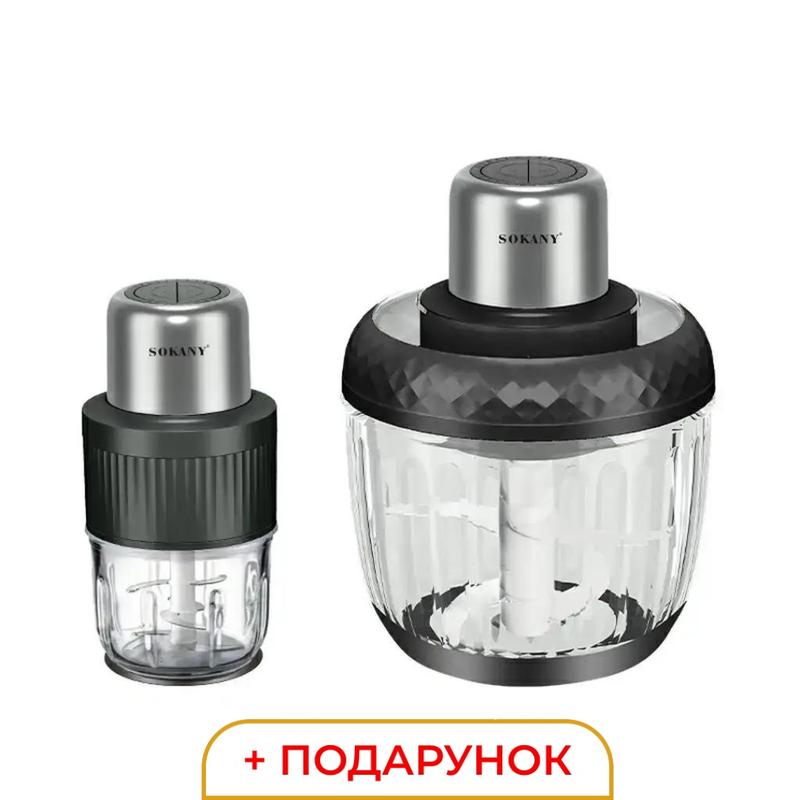 Чоппер подрібнювач набір 2в1 з чашами 0.5 та 3 літри sokany 2 швидкості 800 вт багатофункц...