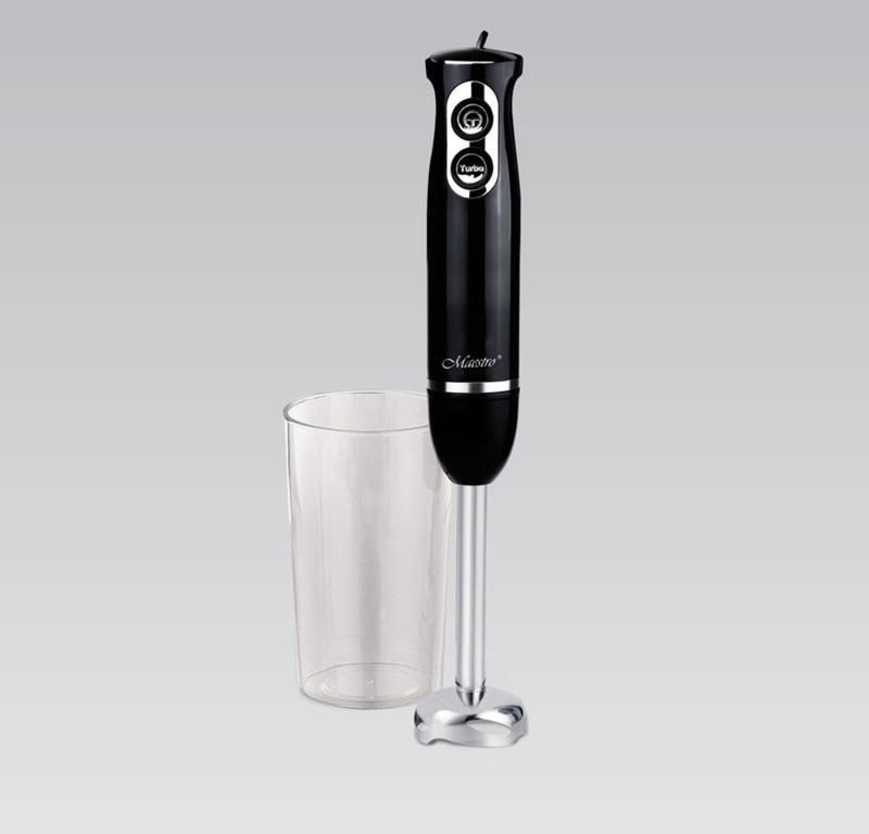 Мощность: 500 Вт Материал: пластик + нержавеющая сталь 2 уровня скорости; функция «Турбо» Лезвия из нержавеющей стали и ножка для смешивания Мерный контейнер объемом 900 мл Размеры изделия: 38.5 x 6.4 x 5.8 см