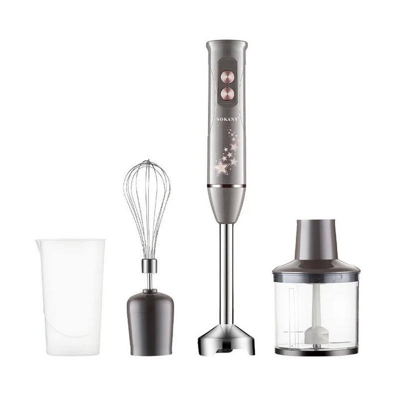 ОСНОВНИЙ ОПИС І ХАРАКТЕРИСТИКА ТОВАРУ: Блендер Sokany SK-02012 - це універсальний пристрій 4 в 1, який поєднує функціональність і зручність. Завдяки потужності 600 Вт і технології Power Bell, він забезпечує швидке та ідеальне змішування, а антибризговий вал з нержавіючої сталі допомагає підтримувати кухню в чистоті. Знімний вал і аксесуари, придатні для миття в посудомийній машині, спрощують догляд за приладом. Кнопка безпеки додає надійності у використанні. Характеристики: Потужність: 600 Вт; Кнопка безпеки; Технологія Power Bell для швидких результатів; Антибризговий вал із нержавіючої сталі; Знімний вал; Аксесуари, придатні для миття в посудомийній машині.