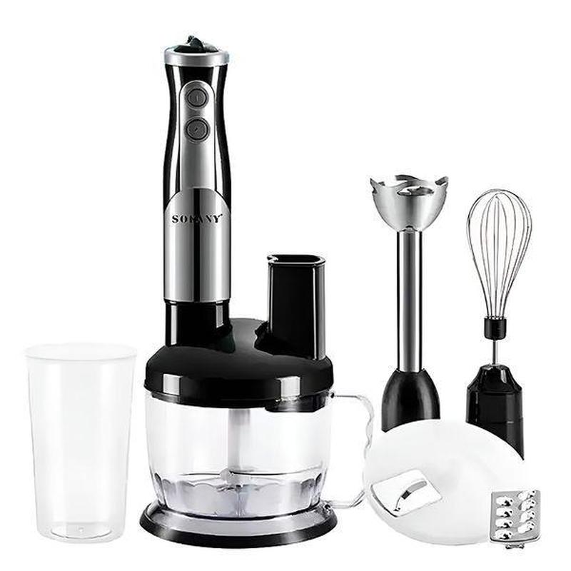 ОСНОВНА ХАРАКТЕРИСТИКА ТОВАРУ: Багатофункціональний блендер Sokany SM-5011-8 - це універсальний прилад, який стане незамінним помічником у вашій кухні. Потужний мотор і кілька насадок дають можливість подрібнювати, змішувати, збивати і натирати продукти, економлячи ваш час і зусилля. Ергономічний чорний дизайн комбайна забезпечує не тільки практичність, але й стильний вигляд на кухні. Легкість в управлінні і обслуговуванні робить Sokany SM-5011-8 відмінним вибором як для початківців, так і для досвідчених кулінарів. Багатофункціональність: об'єднує кілька приладів в одному - від подрібнювача до міксера. Потужний мотор: забезпечує ефективне приготування навіть із твердих продуктів. Стильний чорний дизайн: поєднує естетичність і функціональність. Характеристики: Тип блендера: Занурювальний; Потужність: 700 Вт; Напруга: 220 В; Об'єм чаші блендера: 1,5 л.; Матеріал корпусу: Пластик; Тип управління: Електронне; Об'єм чаші: 1.5 л; Кількість режимів швидкості: 2; Колір: Чорний; Матеріал занурювальної частини: Нержавіюча сталь; Комплектація: Багатофункціональна чаша-подрібнювач, Універсальний подрібнювач, Віночок для збивання, 3 насадки для нарізання і шинкування.