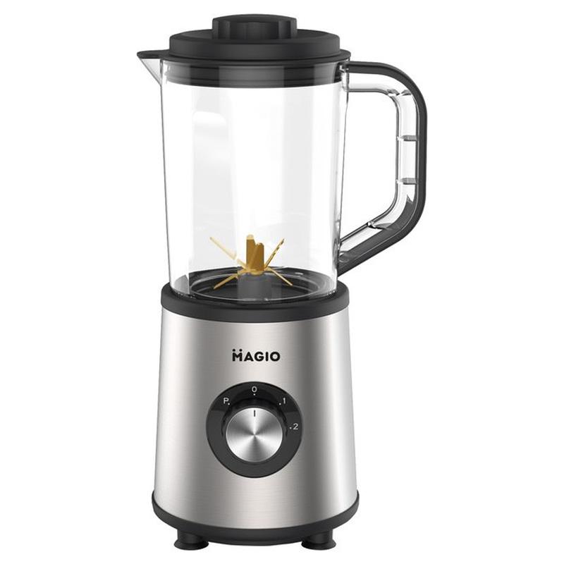БлендерMAGIO MG-240– це стильний та потужний помічник, призначений для тих, хто цінує якість, надійність та зручність. Завдяки мотору на 1000 Вт він легко справляється з приготуванням смузі, сорбету, дитячого харчування, а також ефективно коле лід, що робить його універсальним вибором для будь-якої кухні. Його скляна чаша об’ємом 1,5 літра – міцна, зручна у догляді та абсолютно безпечна для гарячих чи холодних інгредієнтів. Гострі металеві леза забезпечують ідеальну консистенцію навіть найщільніших продуктів, а дві швидкості роботи та імпульсний режим дозволяють точно контролювати процес подрібнення. Корпус із нержавіючої сталі надає пристрою сучасного вигляду і одночасно гарантує довговічність. Завдяки антиковзким ніжкам блендер стійко тримається на поверхні, а система захисту від перегріву подбає про безпеку під час інтенсивного використання. MAGIO MG-240 – це надійність, яка завжди під рукою. Він не просто блендер, а вдале поєднання функціональності та стилю, яке стане ідеальним доповненням до вашої кухні.