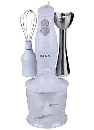 Бренд Rainberg. Цвет металлик с черным акцентами. Этот блендер станет вашим универсальным помощником на кухне, заменяя сразу несколько приборов. Он легко справляется с приготовлением детского питания, супов-пюре и соусов, экономя ваше время и силы. Компактная конструкция не займет много места при хранении. Мощность 350 Вт обеспечивает эффективное измельчение даже твердых продуктов. Три функции в одном устройстве позволяют взбивать, смешивать и измельчать ингредиенты. Специальная чаша с герметичной крышкой предотвращает разбрызгивание при работе. Металлическая погружная часть устойчива к коррозии и легко моется. Эргономичная ручка обеспечивает комфортный захват во время использования. Низкий уровень шума делает процесс приготовления более приятным. Для использования выберите нужную насадку и закрепите ее на основном блоке. При работе с горячими продуктами избегайте заполнения чаши более чем на две трети. После использования промойте съемные части под проточной водой. Доставка возможна через Новую Почту, Укрпошту. Оплатить можно при получении, предварительно проверив комплектацию, или переводом на карту. В комплекте вы найдете все необходимое для разнообразных кулинарных задач. Основные параметры: Тип: погружной 3в1. Мощность: 350 Вт. Управление: механическое. Материал: металл, пластик. Комплектация: венчик, измельчитель. Насадки: 3 варианта. Потрібні додаткові фото/відео товару або повний каталог товарів? Ми зібрали всі матеріали для зручного перегляду. Щоб отримати доступ, просто напишіть нам слово "каталог" в особисті повідомлення.Ми одразу надішлемо вам посилання та допоможемо з вибором. Також відповідаємо на дзвінки.Скажіть ID для питання про цей товар. ID(хештег) цього товару #B33