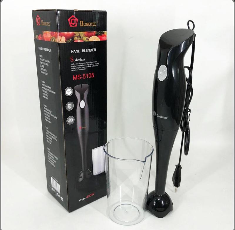 Блендер використовується для змішування майонезу, соусів, дитячого харчування, для рубання цибулі, льоду, твердого сиру, м’яса, приготовлених фруктів та овочів, коктейлів. Матеріал ножів – високоякісна нержавіюча сталь, а пластикова нога зручно знімається та легко миється. Простота його використання не може не тішити. Він компактний, легкий і зручно тримати в руці. ХАРАКТЕРИСТИКИ: Напруга 220В Частота 50Гц Потужність 400Вт Матеріал ноги пластик Матеріал ножів нержавіюча сталь КОМПЛЕКТАЦІЯ: Блендер інструкція Мірна склянка Упаковка