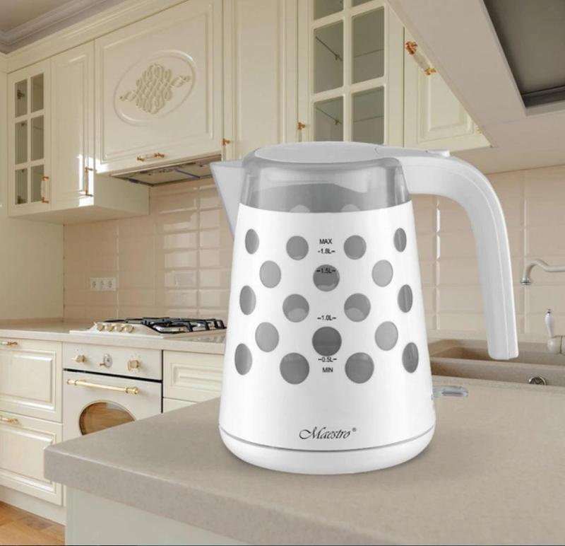 Електрочайник об'ємом 1,7 л. потужністю 2000Вт Maestro MR 045 Електрочайник Maestro MR 045 об'ємом 1,7 л. потужністю 2000Вт. Електричний чайник призначений для нагрівання води до кипіння, оснащений функцією автоматичного відключення та захистом від перегріву. Модель має привабливий сучасний дизайн, відрізняється простотою в роботі та догляді. Прихований (дисковий) нагрівальний елемент зменшує утворення накипу та сприяє тривалому терміну служби. Характеристики: - Об'єм резервуару для води: 1.7 л. - Потужність: 2000 В - Матеріал корпусу: пластик - Індикатор рівня води - Захист від перегріву Комплектація: - Чайник; - Підставка; - Інструкція з експлуатації; - Фірмова упаковка.