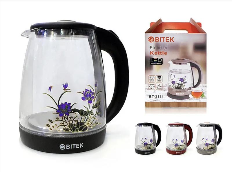 Электрочайник стеклянный 1,8л 2400вт bitek с цветком bt-3111/ 9467
