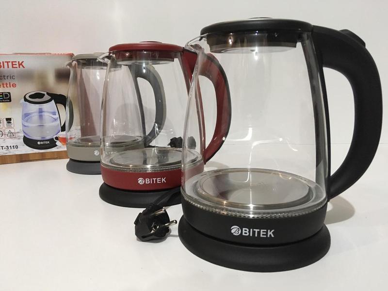 Електрочайник скляний 1,8 л 2400 вт bitek bt-3110/ 7933 (12 шт/ясть)