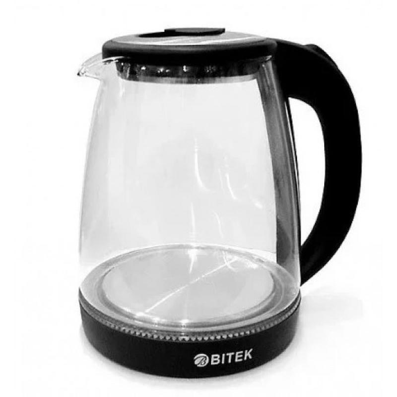 Чайник електричний скляний із захистом від перегрівання 1,8 л LED-підсвітка електрочайник BITEK BT-3110 Чорний Який предмет побутової техніки ми використовуємо найчастіше? У кожного будуть різні варіанти, хтось скаже холодильник, хтось — плита, але погодьтеся, король кожної кухні — це чайник. Він прокидається разом із нами, коли ми готуємо ранкову каву. Також він зустрічає наших гостей, кип'ятячи воду для чаю. Загалом ми вмикаємо його кілька разів на день. Тому так важливо мати на своїй кухні гарний і надійний електрочайник. Як Електрочайник скляний BITEK BT-3110 1,8 л 2400 Вт з LED-підсвіткою. Він виготовлений із якісних матеріалів, корпус зроблений зі скла та пластику. У нього середній об'єм, оптимальний для більшості сімей — це 1,8 л. Цей чайник має LED-підсвітку синього кольору. Також він має захист від перегрівання. Чайник автоматично вимкнеться, якщо там немає води. Його потужність цілих 2400 Вт. Вода закипає в ньому за кілька хвилин. Переваги: - Швидке нагрівання води, що дає можливість за лічені хвилини приготувати улюблений чай або каву; - Підсвітка робочої зони для комфортної роботи в темну пору доби (синім кольором); - Захист від перегрівання, який гарантує довгу експлуатацію; - Стильний малюнок стане прикрасою вашої кухні; - Великий об'єм забезпечить окропом цілу сім'ю, не потрібно кілька разів вмикати чайник, щоб вистачить усім; - Покриття нагрівального елемента з неіржавкої сталі високої якості; - Автоматичне вимкнення у разі закипання убереже від перегрівів і зламання; - Індикатор роботи дає змогу знати, коли електрочайник увімкнений. Характеристики: - Потужність 2400 Вт. - Номінальна напруга 220-240 В - Номінальна частота 50 Гц. - Об'єм 1.8 л - Захист від перегрівання. - Прихований нагрівальний елемент із неіржавкої сталі - Функція обертання на 360°. - Автоматичне вимкнення у разі закипання води - Світловий індикатор роботи - Габаритні розміри 188х180225 мм - Маса нетто/брутто 0,77 кг/0,98 кг - Підсвітка чайника Комплектація 1 х Електрочайник скляний BITEK BT-3110; 1 х Фірмове паковання