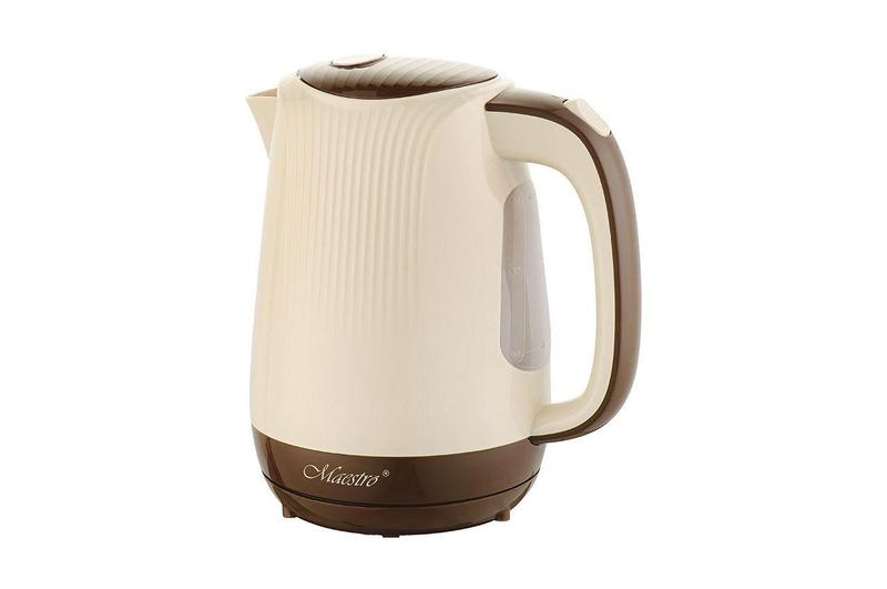 Електрочайник Maestro — MR-042 недорога функціональна модель для дому. Індикатор рівня води дасть змогу візуально контролювати обсяг і доливати воду в міру потреби до потрібної позначки. Кришка відкривається одним натисканням кнопки. Показник потужності 2200 Вт не перевищує можливості електромережі, на відміну від потужніших моделей. Термостійкий пластиковий корпус не нагрівається, тому ризик отримати опік рук унеможливлений. Об'єму 1,7 літра вистачить для чаювання великої родини та гостей. Плоский нагрівальний елемент, який прихований під корпусом, кип'ятить воду набагато швидше, ніж моделі з ТЕНами. Захист від перегрівання спрацює, якщо ви випадково забули долити в чайник води.