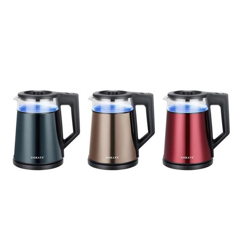 Електричний чайник металевий зі скляною колбою і підсвічуванням sokany sk-sh-1076, 1.7л, 2...