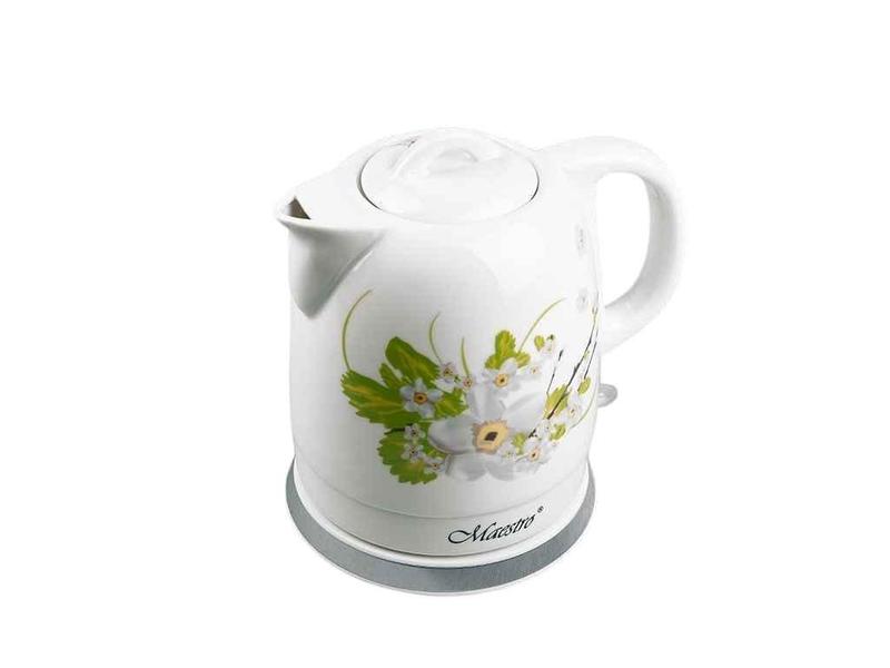 Електрочайник 1200вт 1,5л mr-066-white-flowers (диск.) тм maestro