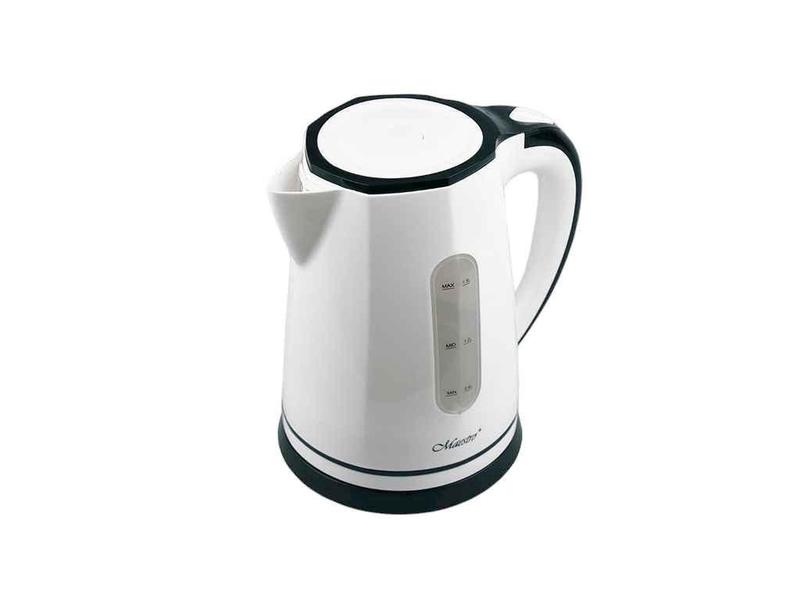 Об’єм: 1,8 л Потужність: 220-240 В, ~50 Гц, 2000 Вт Кольори вставок корпусу: чорний Можливі кольори корпусу: білий Сучасний ергономічний дизайн Фільтр Автоматичне відключення Індикатор рівня води Захист від перегріву Прихований нагрівальний елемент Керівництво з експлуатації