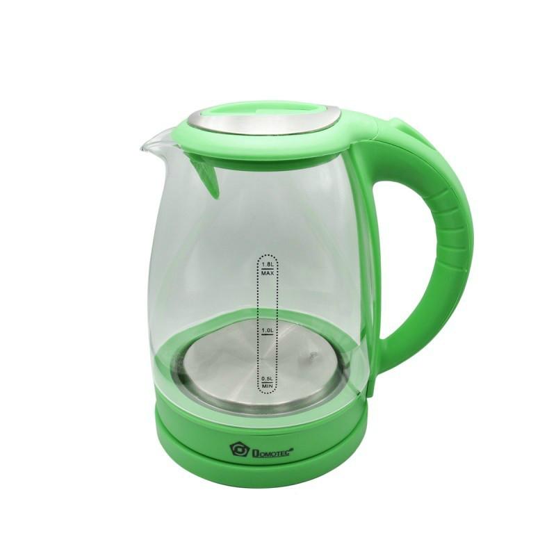 Чайник электрический стеклянный с подсветкой domotec ms-8112, 1.8 л, зеленый