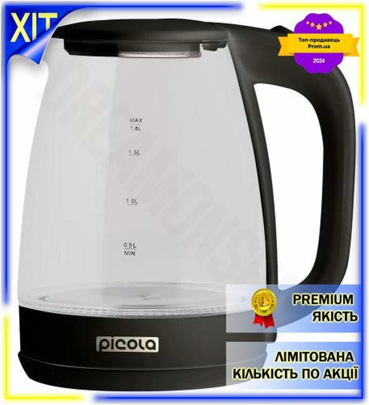 Dm електрочайник picola 1,8 специфікація 2.2 л чорний 1500 вт скляний чайник з led підсвіч...