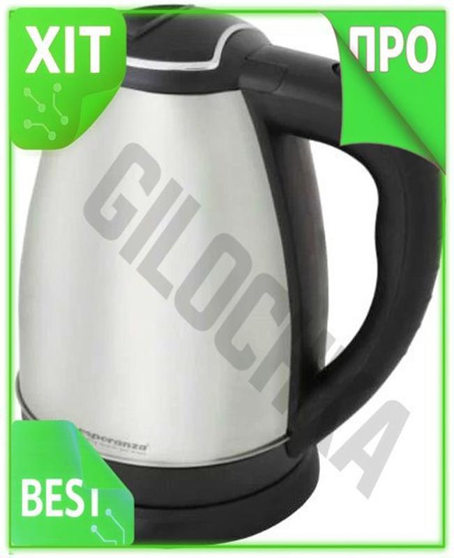 Ve електрочайник esperanza 2200 вт new version silver/black з нержавіючої сталі для швидко...