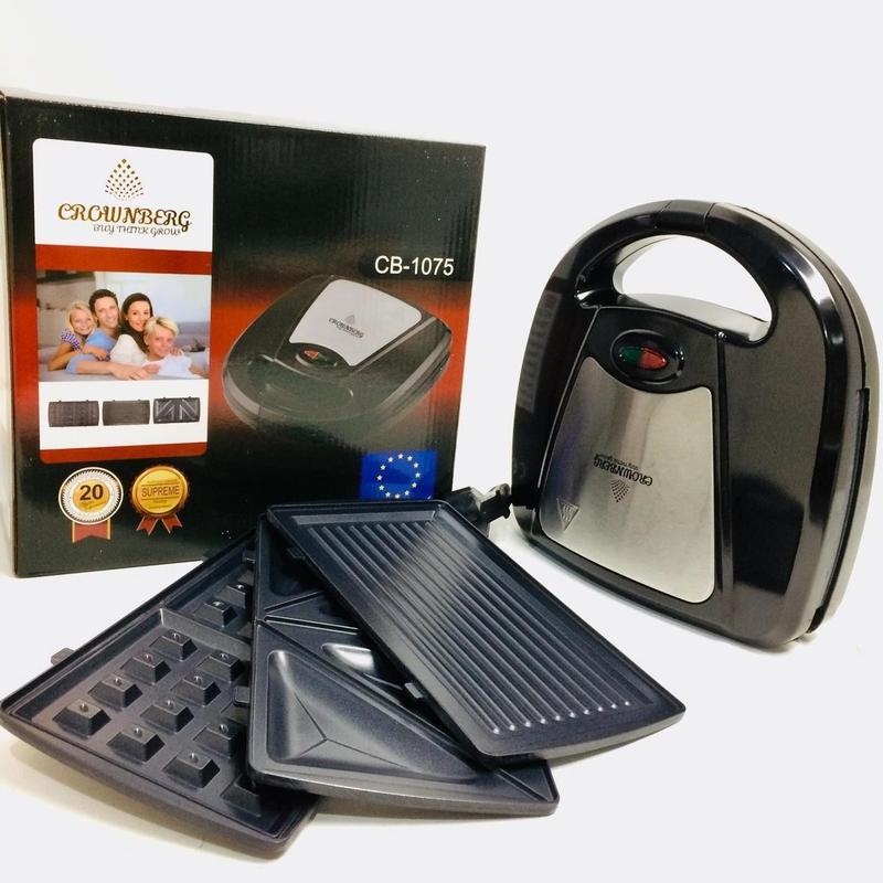 Мультимейкер вафельниця сендвічниця гриль 3в1 зі знімними формами crownberg cb-1075 pro чо...