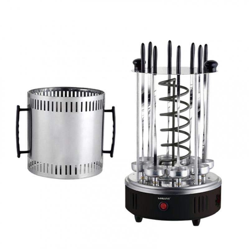 Електрошашличниця Sokany SK-6113 – це зручний та практичний прилад для приготування шашликів в домашніх умовах. Завдяки вертикальній конструкції та автоматичному обертанню шампурів м'ясо прожарюється рівномірно з усіх боків, що робить шашлики соковитими та ароматними. Переваги: Зручність використання: не потрібно постійно стежити за м'ясом Рівномірне прожарювання: шашлики завжди соковиті та ароматні Легко чистити: знімні частини можна мити в посудомийній машині Компактність: не займає багато місця на кухні Характеристики: Потужність: 1500 Вт Кількість шампурів: 8 Місткість: 7-8 кг м'яса Матеріал корпусу: Нержавіюча сталь Матеріал шампурів: Нержавіюча сталь Керування: Механічне Таймер: Ні Захист від перегріву: Так Функція автоматичного вимкнення: Ні