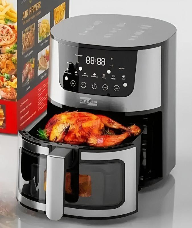 Безмасляна фритюрниця Zepline ZP-142 на 8 л Аерофритюрниця 4200 Вт аерофритюрниця Zepline ZP-142 – фритюрниця з глибоким повітрям, що забезпечує легкий і здоровий спосіб підготовки ваших улюблених інгредієнтів. Використовуючи гарячу швидку циркуляцію повітря та гриль, вона здатна приготувати безліч страв. Найкраща частина полягає в тому, що електрична фритюрниця з глибоким повітрям нагріває їжу з усіх боків Переваги: Приготування без рослинної олії, антипригарне покриття легко миється. 8 л великий об'єм, легко задовольнить потреби всієї родини. Високошвидкісна технологія циркуляції повітря на 360°, яка може швидко нагріти та готувати продукти без додавання соняшникової олії. Нижня вихрова технологія теплового потоку, завдяки якій їжа стає ще смачнішою. Наявні захисні сітки для шафи, термостійкі ручки та вбудований гриль. Характеристики: Потужність (Вт): 4200 Вт Форма: квадратна Функція: Антипригарна поверхня для приготування їжі, Регульований контроль термостата, знімний контейнер для олії. Режим керування: сенсорний Застосування: Домашнє Джерело живлення: Електричне Місткість: 8 л