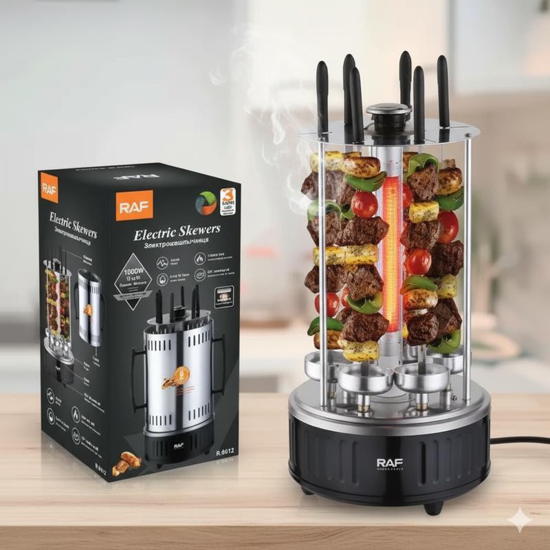 Електрошашличниця вертикальна на 6 шампурів raf r.8612 1000вт шашличниця електрична побуто...