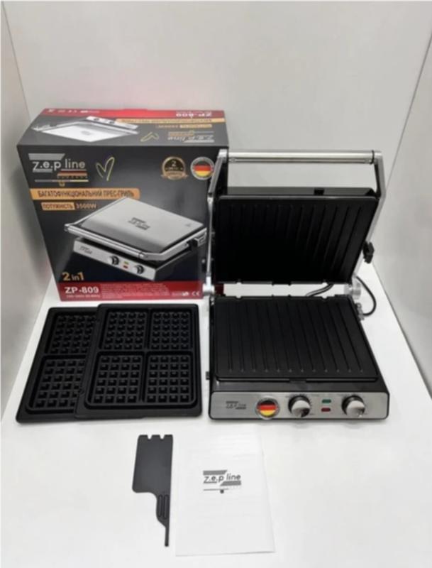 Контактный гриль вафельница 2в1 zepline zp-809 многофункциональный пресс-гриль со сменными...
