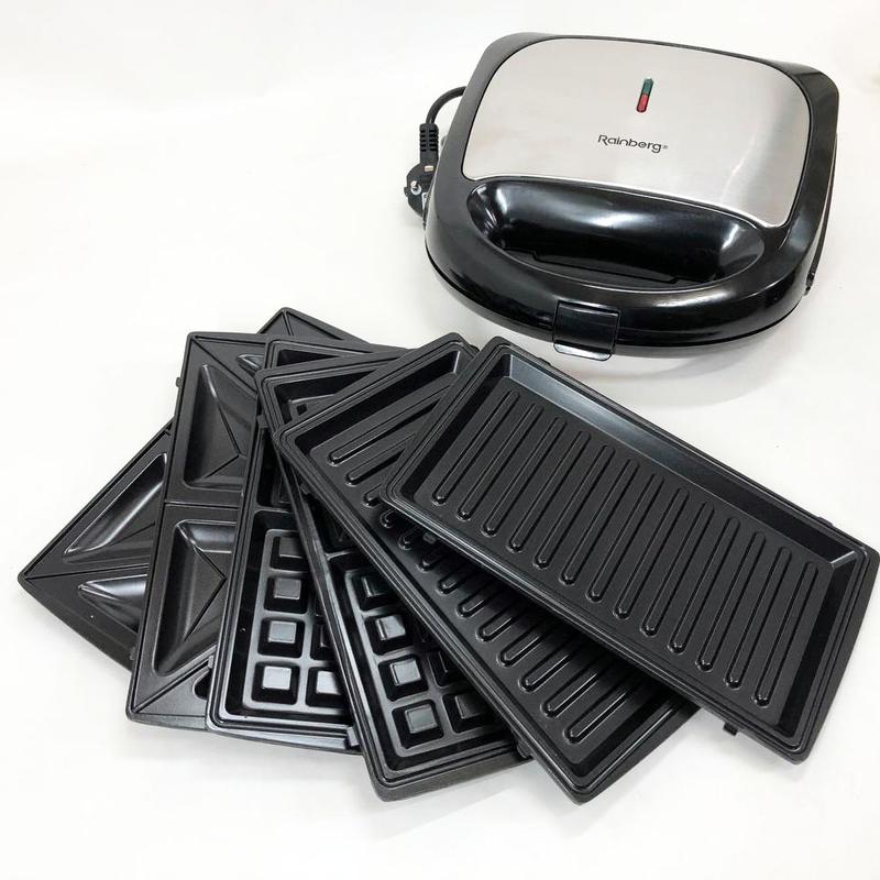 Мультимейкер rainberg rb-5408 4 в 1 вафельниця, бутербродниця, ліщина, гриль 2200 вт елект...