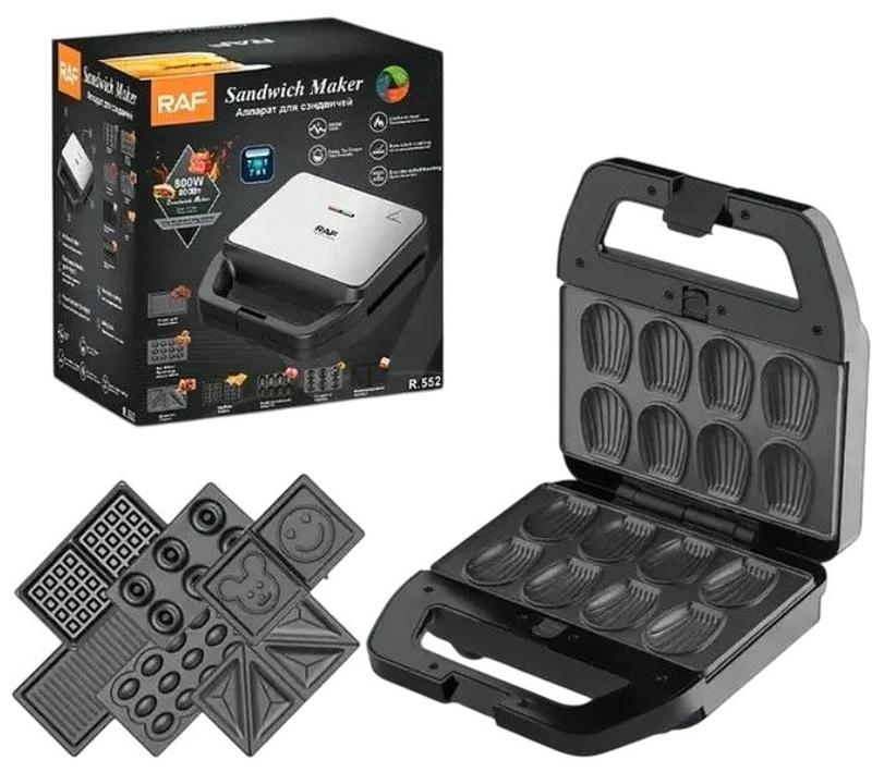 Мультимейкер raf r.552 – 7 в 1: вафельниця, гриль, сендвічниця, пончики, горіхи, кекси, пе...