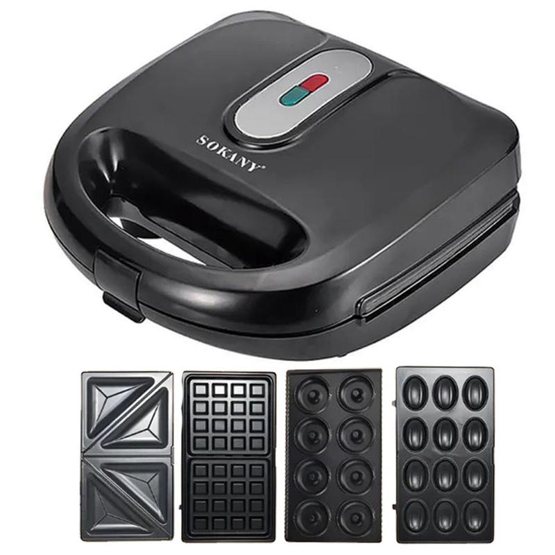 Сендвічниця 4 в 1: Сендвічі, вафлі, гриль та пончики в одному пристрої! Переваги: Багатофункціональність - Готуйте різноманітні страви: сендвічі, вафлі, м'ясо на грилі та навіть пончики! Компактність - Займає мало місця, зручно зберігати. Швидкість приготування - Заощаджуйте час на сніданку або перекусі. Легкість у догляді - Антипригарне покриття для легкого очищення. Економія простору та засобів - 4 прилади за ціною одного! Багатофункціональна сендвічниця 4 в 1 SK-908-4 – це універсальне рішення для вашої кухні. З її допомогою ви зможете швидко та легко приготувати улюблені страви. Змінні панелі дозволяють готувати бутерброди, вафлі, страви на грилі і навіть пончики. Ідеально підходить для швидкого сніданку, перекушування або десерту. Сендвічниця SK-908-4 оснащена антипригарним покриттям, що забезпечує легке очищення після використання. Індикатори нагріву та готовності допоможуть вам контролювати процес приготування. Компактний дизайн та зручність зберігання роблять цю сендвічницю незамінним помічником на вашій кухні. Характеристики: - Тип: Сендвічниця / Бутербродниця / Вафельниця / Гриль - Змінні панелі: 4 комплекти (для сендвічів, вафель, гриля, пончиків) - Покриття панелей: Антипригарне - Індикатори: Індикатор живлення, індикатор готовності - Матеріал корпусу: Пластик - Тип приладу: Сендвічниця - Споживана потужність: 750 Вт - Терморегулятор: Ні - Наявність антипригарного покриття: Так - Індикатор роботи: Так - Індикатор нагрівання: Так - Харчування: 220-240 В, 50/60 Гц Комплектація: - ### Бутербродниця SK-908-4 - Змінні пластини - 4 комплекти - Упаковка