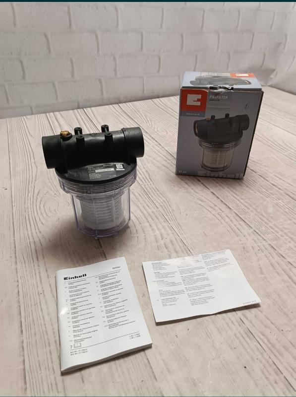 Einhell 4173801 12 см Фільтр попереднього очищення Стан: ідеал Комплектація: Фільтр попереднього очищення Посібник по експлуатації Фабрична упаковка Фільтр попереднього очищення Einhell 4173801 12 см підходить для всіх пилососів насосів Einhell для вологого та сухого прибирання Оригінальний аксесуар EinhellПрочний фільтр попереднього очищення захищає водні об'єкти будинку, садові насоси та водні агрегати від бруду та сажі. Міцний і прозорий корпус фільтраЛатунна внутрішня різь Підходить для BT-VC 1115, BT-VC 1250, BT-VC 1250 S, BT-VC 1250 SA (ідентифікатор 11020), BT-VC 1320 SA, BT-VC 1450 SA (ідентифікатор 01029), BT-VC 1500, RT-VC, RT-1420, 1450 RT-VC 1525 SA, RT-VC 1600 E, TH-VC 1820 S, TH-VC 1930 SA, TH-VC 1815 436884417 733636