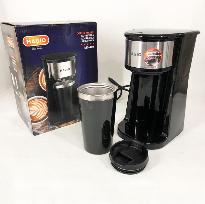 Тип: кавоварка крапельна Потужність: 750 Вт Об’єм бака для води: 420 мл Матеріал корпусу: пластик Знімний багаторазовий фільтр Знімний термокухоль Використовувана кава: мелена Світловий індикатор роботи Виробник: Magio