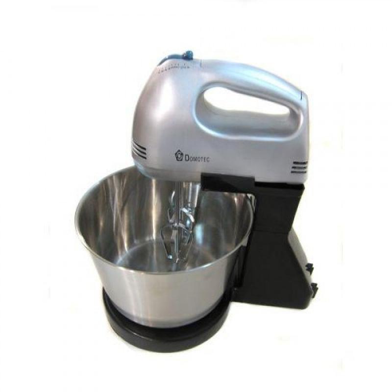 Міксер із залізною чашею DOMOTEC DT-1133 Міксер Domotec MS-1133 поєднує в собі властивості ручного та стаціонарного міксера. Він обладнаний мотором, потужність якого становить 200 Вт і дає змогу легко збивати яйця, соуси, бісквітне тісто тощо. Ручний міксер із чашею MS-1133 має 7 швидкісних режимів роботи для збивання продуктів різної щільності. У комплекті Domotec MS-1133 є велика чаша, на яку легко встановлюється міксер, у такий спосіб перетворюючи його на стаціонарний прилад, що дає змогу звільнити руки на кухні. Також є два віночки для збивання та додаткові гаки для замішування тіста, що гідно оцінять господині, які люблять тішити свою сім'ю різною випічкою. Міксер Domotec MS-1133 — прилад дуже зручний, легкий у використанні та очищенні, який допомагатиме готувати Ваші улюблені страви. Корпус міксера Domotec MS-1133, підставка та чаша виготовлені з пластику, а насадки з неіржавкої сталі, продумана до дрібниць ергономіка надає додатковий комфорт у використанні цього міксера. Характеристики: • 7 скоростей • Живлення: 220V 50Hz • Потужність: 200W • Матеріал корпусу: пластик, метал • Металева чаша • Об'єм чаші: 2л • Нахил підставки на 45 градусів • Кнопка для зручної екстракції насадок • Колір: сріблястий, підставка чорна • Довжина кабелю живлення: 90 см • Розмір міксера: 17,5 x 7 x 12 см Комплектація: • Миксер • 2 шт. насадка для збивання • 2 шт. насадка для тіста • Підставка • Чаша • Інструкція • Коробка