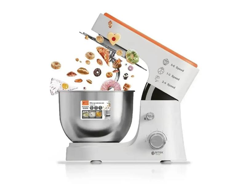 Міксер-тестомес bitek bt-6611 стаціонарний, планетарне обертання, металева чаша, 4 л, 800b...