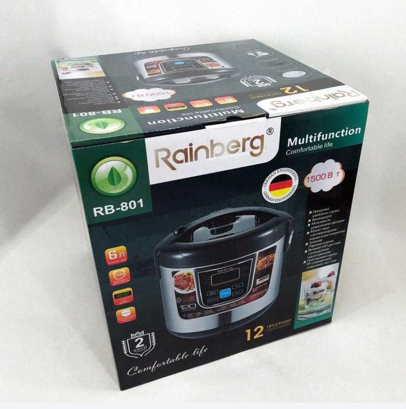 ОПИС ХАРАКТЕРИСТИКИ Мультиварки Rainberg • Мультикомп’ютерний контроль • Об’єм 6 л • Потужність 1500 Вт • Режими: Варіння, випічка,смаження, м’ясні страви, йогурт, крупи, десерт, варіння на пару, молочна каша, підігрів готових страв та ін. • Матеріал корпусу – метал • Покриття чаші – тефлонове • Годинник – є • Управління-електронне • Максимальний час встановлення таймера – 24 год • Ручне регулювання часу приготування • Підтримка тепла – є • Відкладений старт є • 12 автоматичних програм КОМПЛЕКТАЦІЯ: • Мультиварка • Мірна ложка (2 шт) • Мірна ємність • Інструкція • Коробка З мультиваркою Rainberg Ви зможете готувати свої улюблені страви ще краще і без зайвих клопотів. Продукти в мультиварці прогріваються рівномірно з усіх сторін – знизу, з боків та зверху. Мультиварка оснащена LED-дисплеєм, який робить керування та роботу з нею зручним та простим процесом.