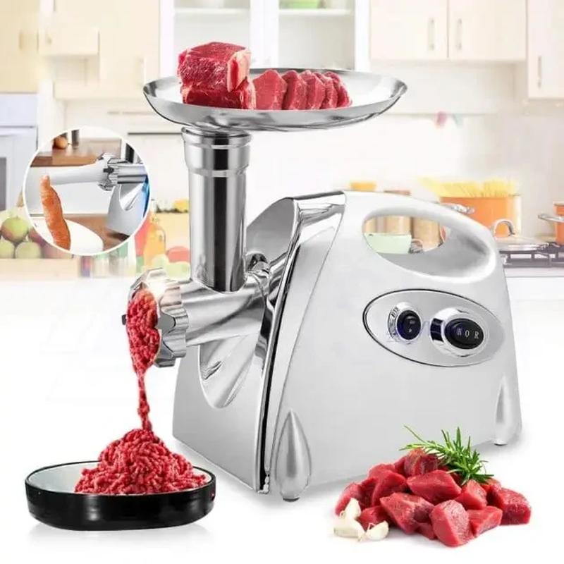 Електрична м'ясорубка Rainberg призначена для виготовлення фаршу з м'яса, риби, грибів, нарізання овочів і фруктів, профілювання пісочного та пельменного тіста. Тип м'ясорубки — шнековий. Ця модель забезпечена функцією "реверс": для запобігання ущільненню продуктів усередині м'ясорубки передбачений режим зворотного обертання шнека. Корпус м'ясорубки виготовлений із міцного пластику, на нижній частині корпусу розташовані прогумовані ніжки для додаткової стійкості. Потужність двигуна 3800 Вт, 2 гострі ножі з неіржавкої сталі. Головка корпусу з алюмінію. Набір решіток для приготування фаршу. Низький рівень шуму. Хрестоподібний ніж із неіржавкої сталі. М'ясорубка — незамінний прилад у домашньому побуті. Прекрасне пристосування, яке заощадить максимум часу під час приготування фаршу та ковбас. Потужність м'ясорубки становить 3800 Вт, тобто за 1 хвилину його експлуатації ви зможете приготувати до 2 кг фаршу. Характеристики: Потужність 3800 Вт; Система реверса; Захист двигуна від перезавантаження; Міцний металевий шнек; Соковичавниця; Шнек для соковичавниці; Гумові ніжки для додаткової стійкості; 3 насадки з отвором різного діаметра (3mm. 5mm. 7mm); 2 ножі з неіржавкої сталі; Металевий лоток для продуктів. Комплектація: М'ясорубка Rainberg 3 насадки з отвором різного діаметра 2 ножі з неіржавкої сталі Насадка для соку Насадка "кубе" для приготування домашньої ковбаси