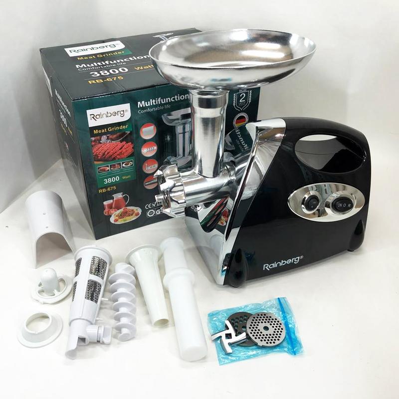Мясорубка rainberg rb-675 3800 вт с соковыжималкой, мясорубка электрическая металл. цвет:...