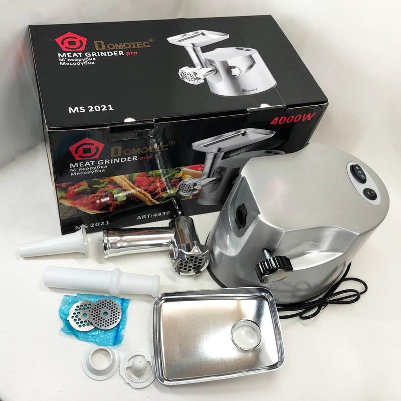 🔴ВИДЕО РАСПАКОВКИ ТОВАРА НИЖЕ!🔴 💎 Вы получите такой товар, как на видео! 👇Жми "Подробнее!"👇 🛡️ Мясорубка с решеткой для фарша DOMOTEC, Электромясорубка с реверсом и насадкой для колбасы AH-42 💎 Электрическая мясорубка Domotec MS-2021 - такой подарок порадует любую хозяйку и облегчит ей приготовление любимых блюд.При помощи этой мясорубки можно быстро приготовить качественный фарш для котлет, пельменей, тефтелей, голубцов и других вкуснейших кулинарных шедевров, а также фруктовый и овощной соки.Функция реверса решает проблему наматывания жил на шнек.В комплекте идут три решетки разного диаметра для изменения степени помола мяса. 💎 Характеристики: - 🔹 Защита от перегрузок - 🔹 Количество решеток-3 - 🔹 Максимальное время непрерывной работы (мин)-7 - 🔹 Материал корпуса-Метал - 🔹 Мощность при заблокированном двигателе (Вт)-3000 - 🔹 Номинальная мощность (Вт)-3000 - 🔹 Реверс - 🔹 Страна производитель-Китай 💎 Дополнительные функции и характеристики: - 🔹 Длина сетевого шнура (м)-1.1 - 🔹 Максимальная высота посуды (мм)-110 - 🔹 Материал лотка-Металл - 🔹 Материал рабочей камеры-Металл - 🔹 Насадка для приготовления колбас - 🔹 Насадка-кеббе - 🔹 Прорезиненные ножки - 🔹 Толкатель - 🔹 Формовочная насадка для фарша 💎 Габаритные размеры - 🔹 Вес (кг)4 - 🔹 Высота (мм)350 - 🔹 Глубина (мм)330 - 🔹 Ширина (мм)190 🔧 Дополнительные параметры - 🔹 Количество решеток: 2 - 🔹 Производитель: Domotec - 🔹 Производительность мясорубки: 1 - 🔹 Номинальная мощность: 3000 - 🔹 Страна производитель: Германия - 🔹 Материал корпуса: Нержавеющая сталь - 🔹 Состояние: Новое - 🔹 Реверс: Да - 🔹 Цвет корпуса: Серый - 🔹 Материал лотка: металл