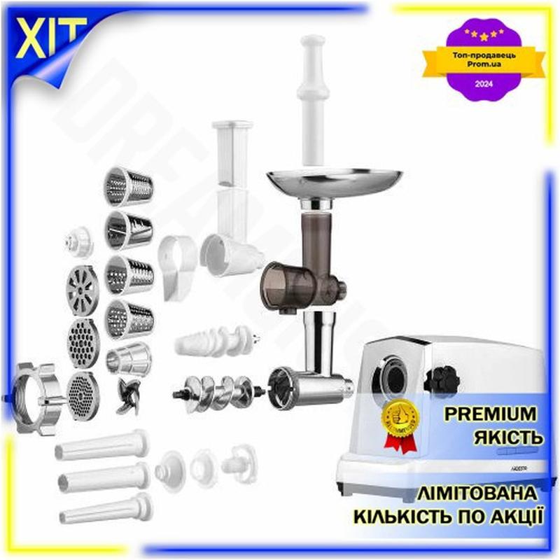 ## DM М'ясорубка Ardesto 1750Вт специфікація 2.2 електрична для фаршу та ковбас домашня з реверсом 3 диск SPE|LZ Електром’ясорубка Ardesto MGA-2300J поєднує в собі елегантний дизайн і виняткову потужність, роблячи її незамінним помічником на кухні. Її номінальна потужність становить 1200 Вт, а максимальна — 1750 Вт, що гарантує швидке та ефективне подрібнення будь-якого м’яса. Особливості Ardesto MGA-2300J - Ця модель оснащена трьома решітками з різними діаметрами отворів (5 мм, 7 мм і для ковбас і кеббе), завдяки чому можна готувати фарш різної консистенції та домашні ковбаси. - Функція реверсу допоможе впоратися із жорстким м’ясом, а захист від перевантаження забезпечить безпечну роботу пристрою. - Завдяки місткому завантажувальному лотку і знімному шнеку Ardesto MGA-2300J зручна і проста в застосуванні. Після використання м’ясорубку легко очистити, адже всі її знімні частини можна мити в посудомийній машині. - Дві терки (дрібного і грубого помелу) дадуть Назва Од.Вим. Значення Турборежимнемає Матеріал корпусупластик Функція "Реверс"є Насадка для сосисокє Матеріал завантажувального лоткаметалевий завантажувальний лоток Захист від перегрівує Насадка для томатів, ягіднемає Кількість дисків з отворами різного діаметру3 диски Насадка "Кеббе"є Кількість швидкостей2 Матеріал ножашнек із нержавіючої сталі Насадка для терки/шаткуванняє Кількість насадок15 насадок КолірWhite/Silver Потужність1750 Вт Не проґавте можливість, кількість акційних пропозицій обмежена! Будьте пильнi! На ринку з’явилося багато пiдробок низької якості, якi видають за opигiнaл! Ми гарантуємо найвищу якicть нашої продукції в Україні, яка бездоганно виконує свої функцiї та дарує вам лише позитивнi емоції. Чому покупці обирають нас? Рекомендації та позитивнi вiдгуки вiд реальних покупцiв Наш інтернет-магазин пишається численними схвальними вiдгуками вiд задоволених клієнтів. Перегляньте їхнi думки та рекомендацii безпосередньо тут або на нашому сайті, щоб переконатися у правильностi вашого вибору. Відкритість та поряднicть Ми будуємо відносини з клієнтами на основі чесності та відкритості, завжди готові йти назустріч. Всі деталi про товари, гарантii та умови обміну чітко прописані на сайті, що забезпечує довipу та взаєморозуміння. Зручне повернення без зайвих клопотів Ми розуміємо, що іноді трапляється, що річ не пiдiйшла. Тому наша система повернення проста та зрозуміла, щоб ви почували себе впевнено та спокійно пiсля покупки. Висококласний сервіс, 10 рокiв досвiду Наші фахівці завжди готові надати професійну консультацію та допомогти з вибором. Ми цiнуємо кожного клієнта та прагнемо зробити ваш досвід покупок максимально приємним та зручним. Оперативна доставка та рiзнi варiанти оплати Ми забезпечуємо швидку доставку по всій країні, а також пропонуємо широкий спектр способів оплати, включаючи онлайн-платежі та оплату при отриманні. Обирайте опцію, яка вам найзручніша. ✅ Кожен товар проходить ретельну перевiрку перед вiдправкою ✅ Відгуки наших вдячних клієнтів Поспішайте, залишилося лише 3 акцiйних товари! ✅ З повагою до кожного покупця ✅ ДОСТАВКА ПО ВСIЙ УКРАЇНI: Ми дбайливо пакуємо кожне замовлення, щоб вашi покупки приїхали цiлими та неушкодженими. Але, будь ласка, перевіряйте посилку уважно на наявність пошкоджень у пункті видач