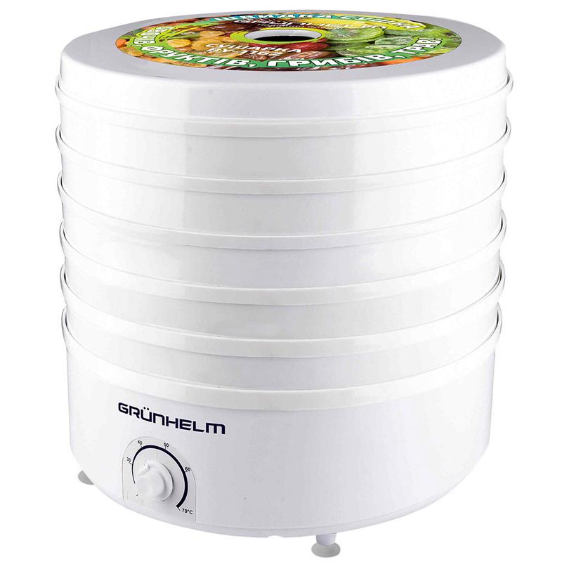 Описание характеристики: . Комплектація: - Сушарка - 5 рівнів - Інструкція - Гарантійний талон. Цвет изделия: Белый. Штрих код: 6902017011625. Тип управління: Механический. Особливості: Равномерное высушивание на всех уровнях. Есть возможность приготовления домашней лапши, сухариков и вяленой рыбы.. Загальний об'єм: 20 л. Потужність: 520 Вт. Потужність, Вт: 520. Матеріал корпуса: Пластик. Вес брутто, кг: 4.5. Вместимость 1-го уровня, кг: до 4. Возможность добавления дополнительных секций: Нет. Высота поддона, см: 5. Диаметр уровня, см: 38. Количество поддонов, шт: 4. Кількість температурних режимів: 5. Матеріал піддонів: Пищевой пластик. Напряжение переменного тока, В: 220 - 240. Оснащение: Защита от перегрева Индикатор включения. Распложение вентилятора: Снизу. Система сушіння: Конвективная Нагревательная. Температура сушіння: 36 - 70 ˚C . Терморегулятор: Есть. Виробник: Grunhelm. Країна походження: Китай. Гарантія: 2 роки. Напруга мережі: 220В / 50 Гц. Вага нетто: 4 кг. Вага брутто: 4.5 кг. Діапазон температур: 35 - 70°C. Місткість 1-го рівня: До 4 кг. Кількість складних рівнів: 5. Діаметр рівня: 38 см. Розмір сушарки: 385х385х376 мм. Розмір упаковки: 390х390х400 мм.
