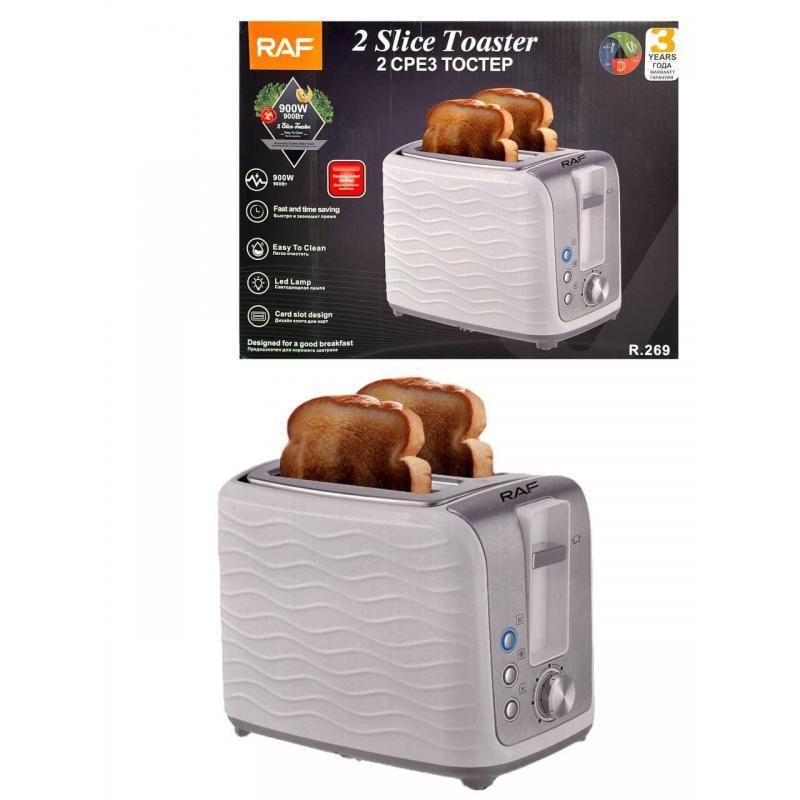 Тостер RAF. Потужність - 900 Вт. Кількість режимів – 6. Живлення – електрична мережа. Управління – механічне. Паковання — коробка.