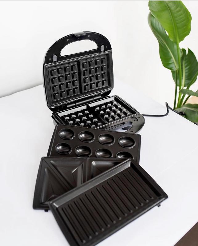 Мультигриль со сменными формами соединил в себе 4 кухонных прибора: Орешница, Сэндвичница, Вафельница, Гриль. Благодаря съемным формам теперь не нужно держать на кухне множество приборов, чтобы приготовить любимые блюда. Экономия места и большая функциональность. Корпус из нержавеющей стали с функциональностью вентиляционного охлаждения.