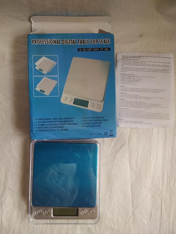 Нові, відправлю Новою поштою, Укрпоштою, Міст є Безпечна оплата Особливості: • автоматичне калібрування ваг • висока точність зважування • функція автоматичного/ручного відключення живлення • функція тарування • функція підрахунку дрібних однакових предметів Характеристики: ~ Максимальна вага зважування (у грамах): 3000 грам ~ Ціна розподілу 0,01 грама ~ Автоматичне відключення живлення ~ Функція перемикання заходів зважування: г (g); унція (oz); тройська унція (ozt); пенівейт (dwt); гран (gn); карат (ct); ~ функція тари ~ 5-ти розрядний мульти-дисплей ~ світлодіодне підсвічування синього кольору ~ індикація низького заряду батареї ~ індикація навантаження ~ живлення: два елементи живлення ААА ~ матеріал: пластик