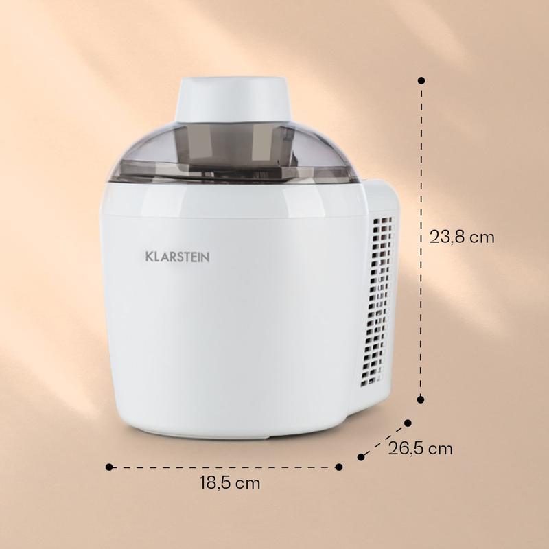 Основні характеристики: - Універсальність: проста морожениця для холодних страв, як-от морозиво, молочні коктейлі, смузі або желе. - Без попереднього охолодження: свіже морозиво за 1-2 години без попереднього охолодження контейнера або інгредієнтів - Порційний: термоконтейнер для морозива до 700 мл (місткість 0,3 л для інгредієнтів) - Тихий як шепіт: завдяки термоелектричній системі охолодження надзвичайно тиха робота (без компресора) - Економічний: споживана потужність усього 90 Вт Характеристики: - просте керування за допомогою двох кнопок і цифрового дисплея - економне енергоспоживання 90 Вт - 6 вибираних, повністю автоматичних програм - Відтворення робочого часу, що залишився під час роботи - Замок безпеки в кришці - нековзні гумові ніжки для надійної підставки - компактні розміри - Ідеї рецептів в інструкції - Перемикач вмик./вимк. на панелі керування - включно з ополоником для морозива, лопаточку та п'ятьма мірними ложками різного розміру для прикрашування - Електроживлення: 220-240 В~ ⁇ 50/60 Гц Обсяг постачання: - 1 х пристрій - 1 х кришка з приводом - 1 х паличка для перемішування - 1* совок для льоду - 5 мірних ложок (різних розмірів) - 1* шпатель - 1* адаптер живлення - багатомовний посібник користувача Розміри: - Розміри (пристрій): 18,5 х 23,8 х 26,5 см (ШхВхГ) - Розміри (термоконтейнер): 8,5 x 8,5 см (ВxØ) - Вага (пристрій): приблизно 2,55 кг
