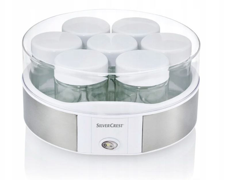 Отправляем без подписки накладным платежом или с полной оплатой по желанию Код 25739490 Для приготовления натурального йогурта 7 мерных стаканчиков с крышками, закручивающимися основание из нержавеющей стали Стойкий благодаря нескользящим ножкам Выключатель включения/выключения с индикатором Стаканчики, закручивающиеся крышки и крышка прибора можно мыть в посудомоечной машине Полезный объем на стаканчик: около 180 мл Технические данные Мощность: 15 Вт Рабочее напряжение: 220 – 240 В~ 50 – 60 Гц Размеры Общие: примерно 233 x 233 x 125 мм Длина кабеля: примерно 80 см Вес около 601 г Мощность: 15 Вт