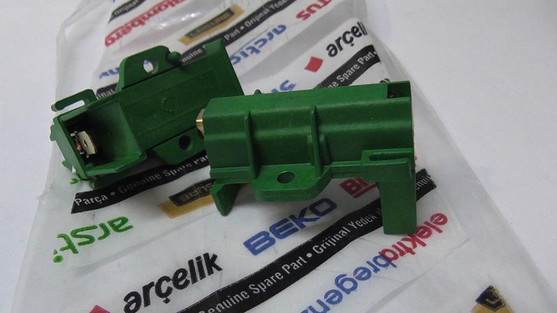 Щітки двигуна в щіткотримачах (графітові) для пральних машин Bek**********. Оригінальні щітки Beko. Використовуються в таких моделях: WMB81231-EU WMB81241LMB WA8660-ALM WAF7560S-EU WAF1560A-BEL WAF7340S-EU WMB81241LM WMB81242LMA-EU WMB81241LB-EU WMB71441PT-EU WMD78100-EU WMD67146-ALM WMB81241L-EU WMB81231M-EU