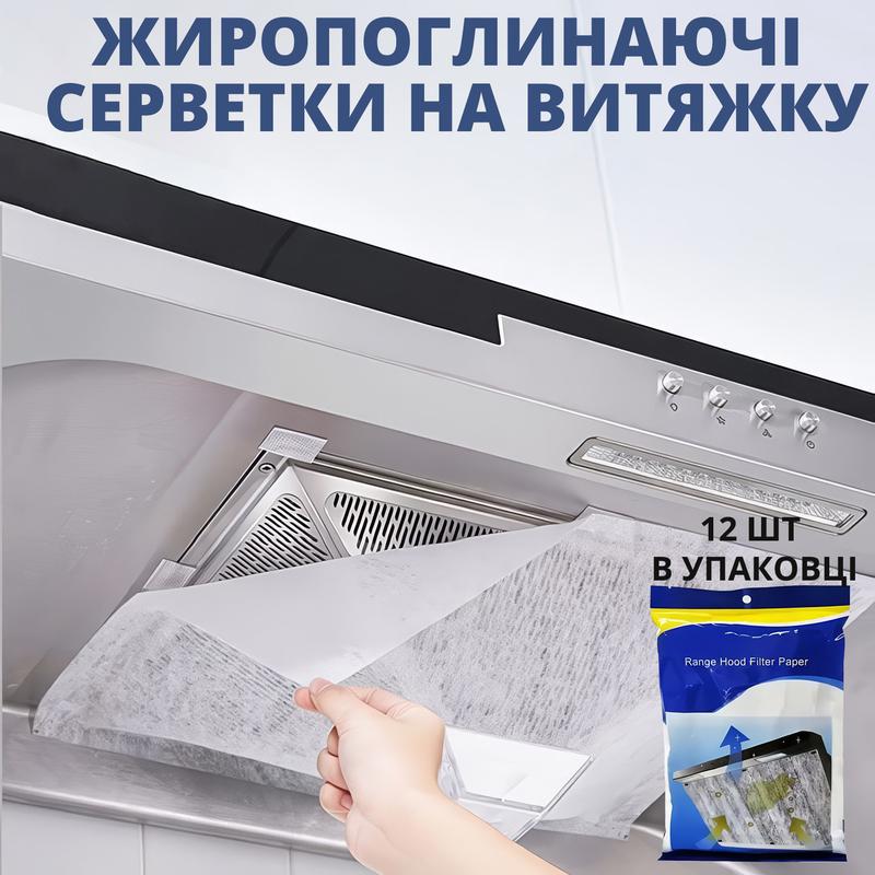 Жиропоглощающий салфетки фильтр для вытяжки на липучке, 43 х 45 см, 12 шт в упаковке